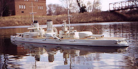 New boat...time for another choice! I looked around, and asked around, and decided on a Posen. A 39" Nassau-class battleship with 4 units, three props and twin rudders. I was told by veterans that these little ships were worthless because they lacked the muscle to survive in the bump-and-grind melee of the battleship skirmishes.